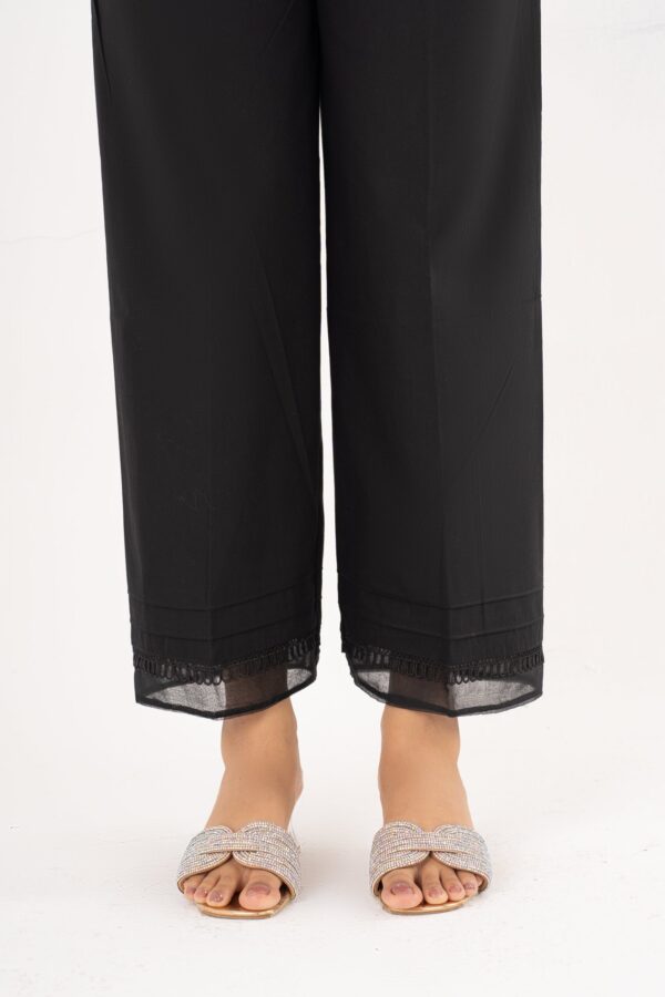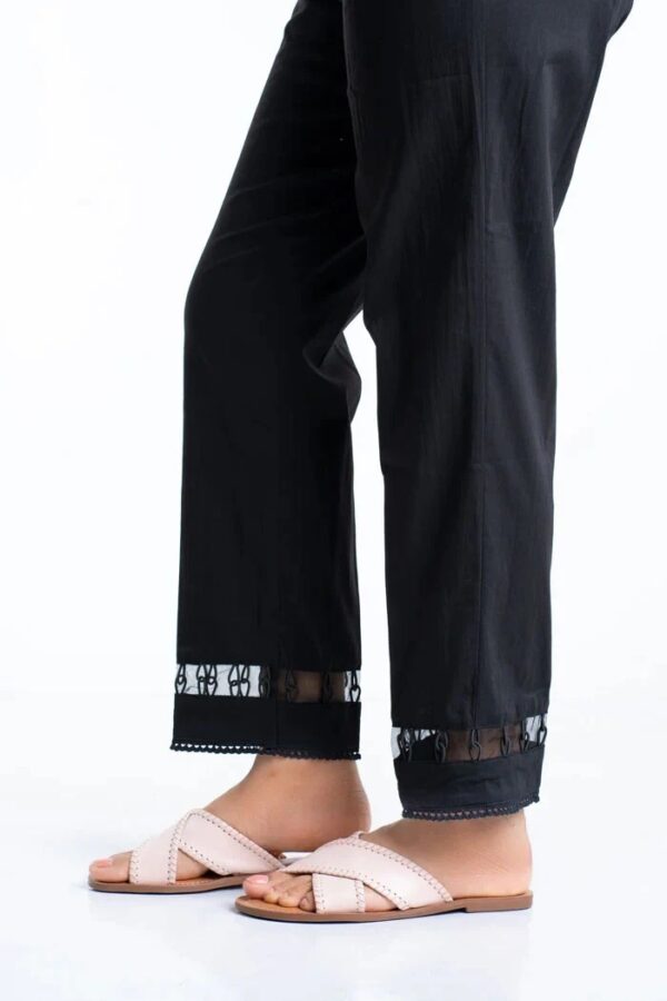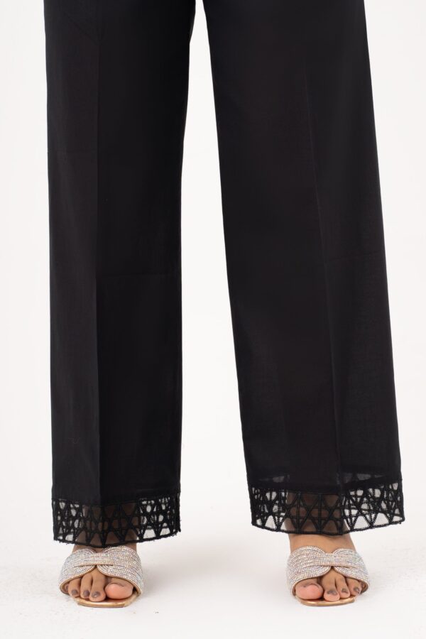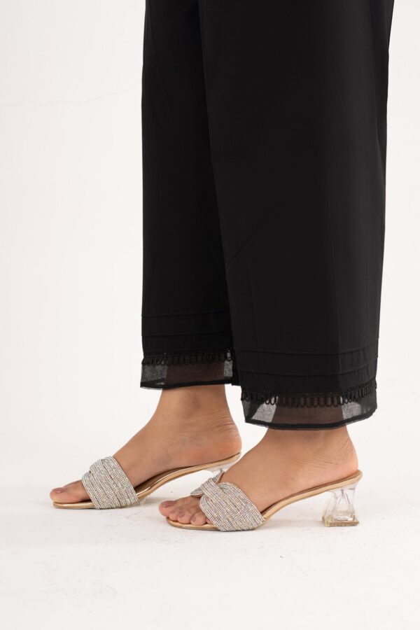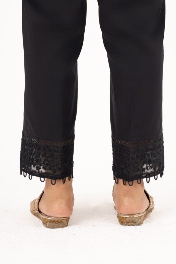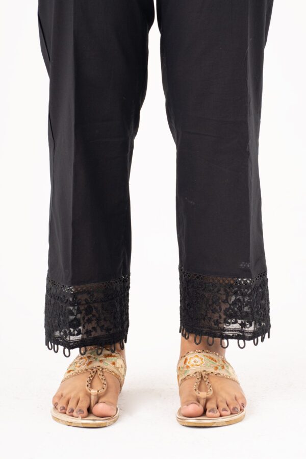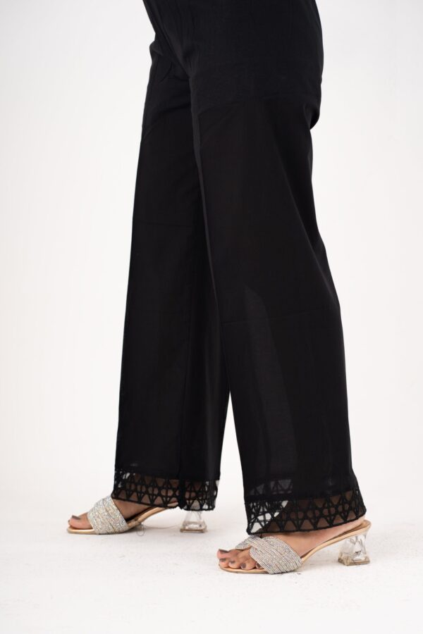 - Lace Trim Detail: Adds elegance to a classic black pant.