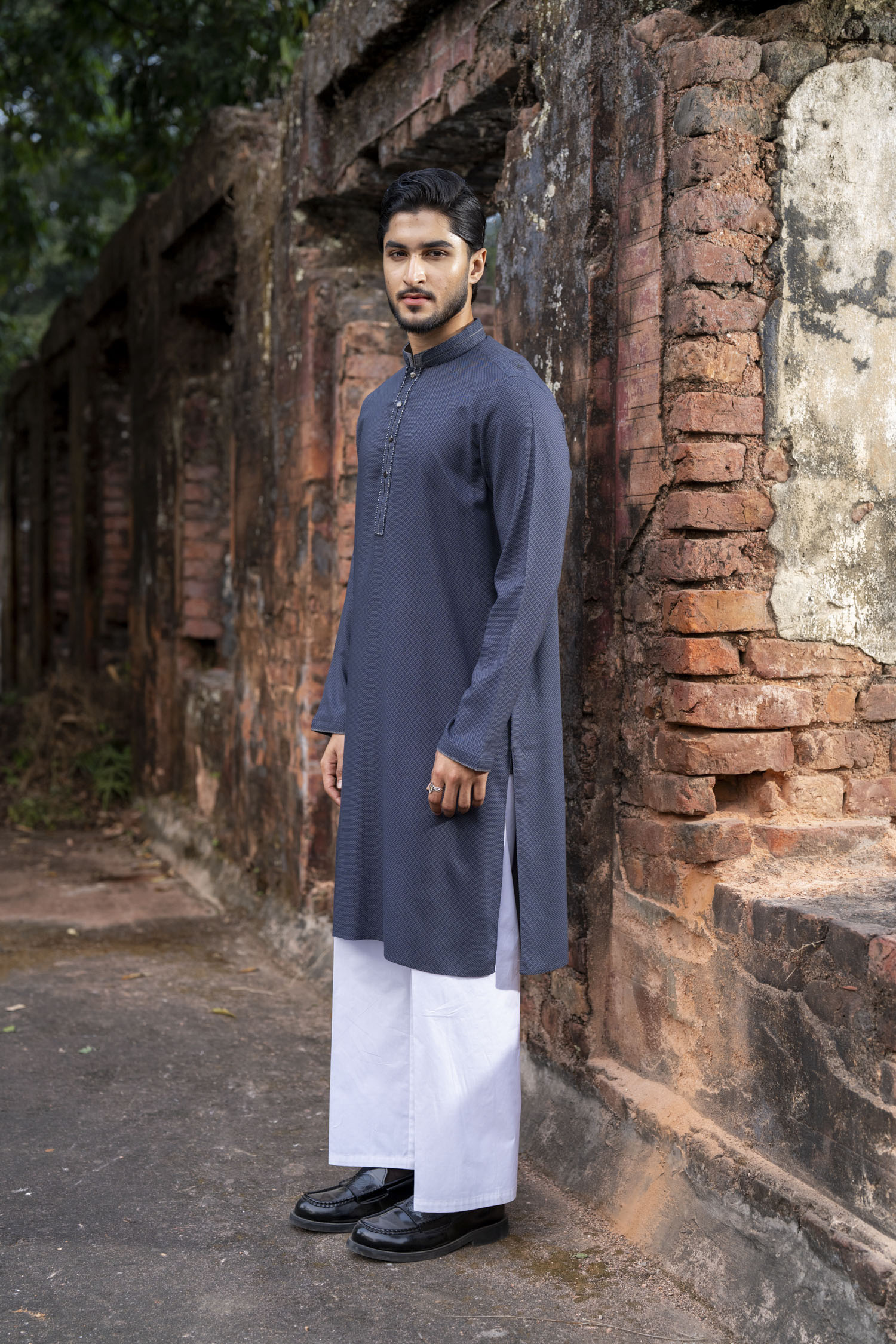 100% Viscose comes with all over rottery print, ban collar with contrast, karchupi, and cutline details.