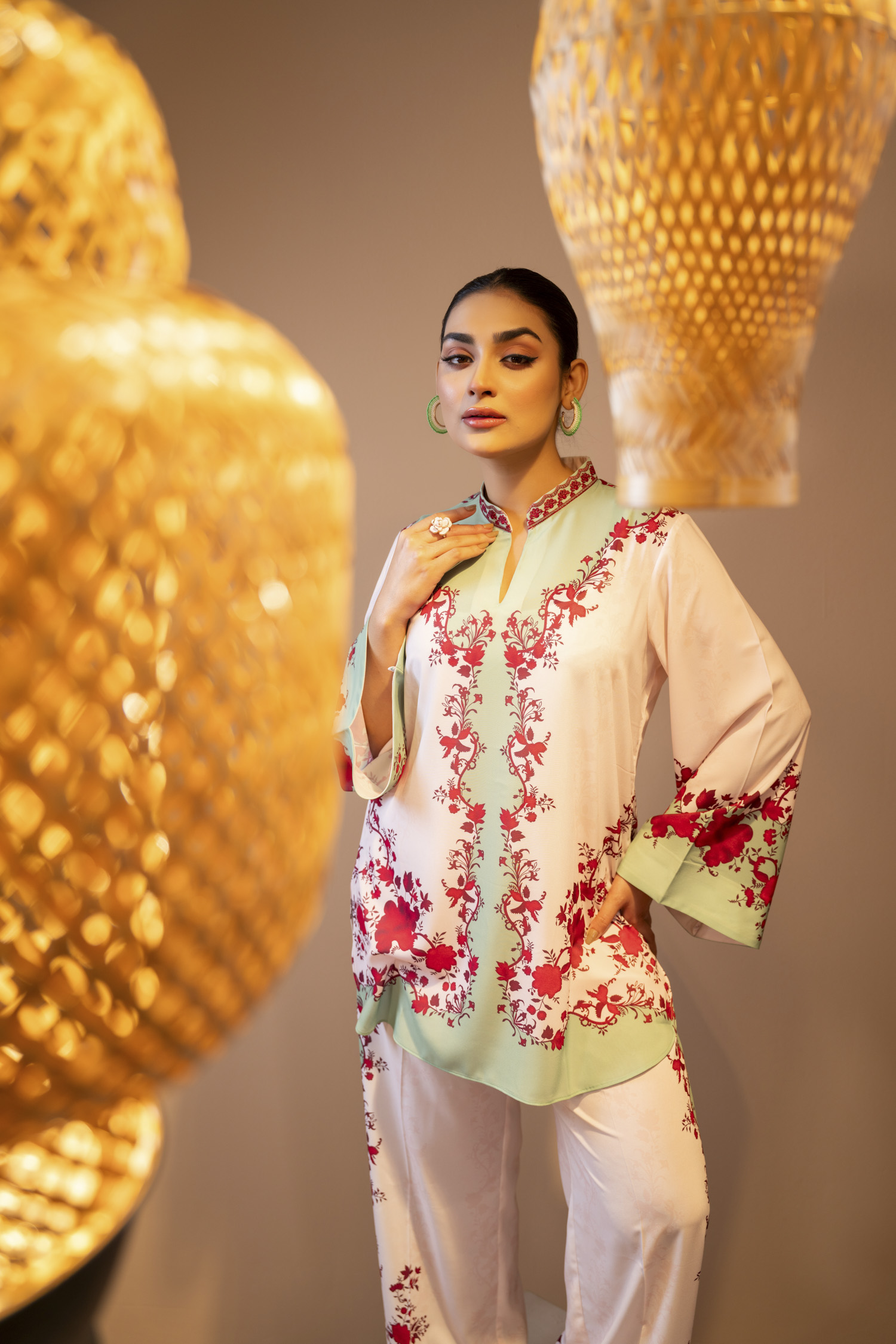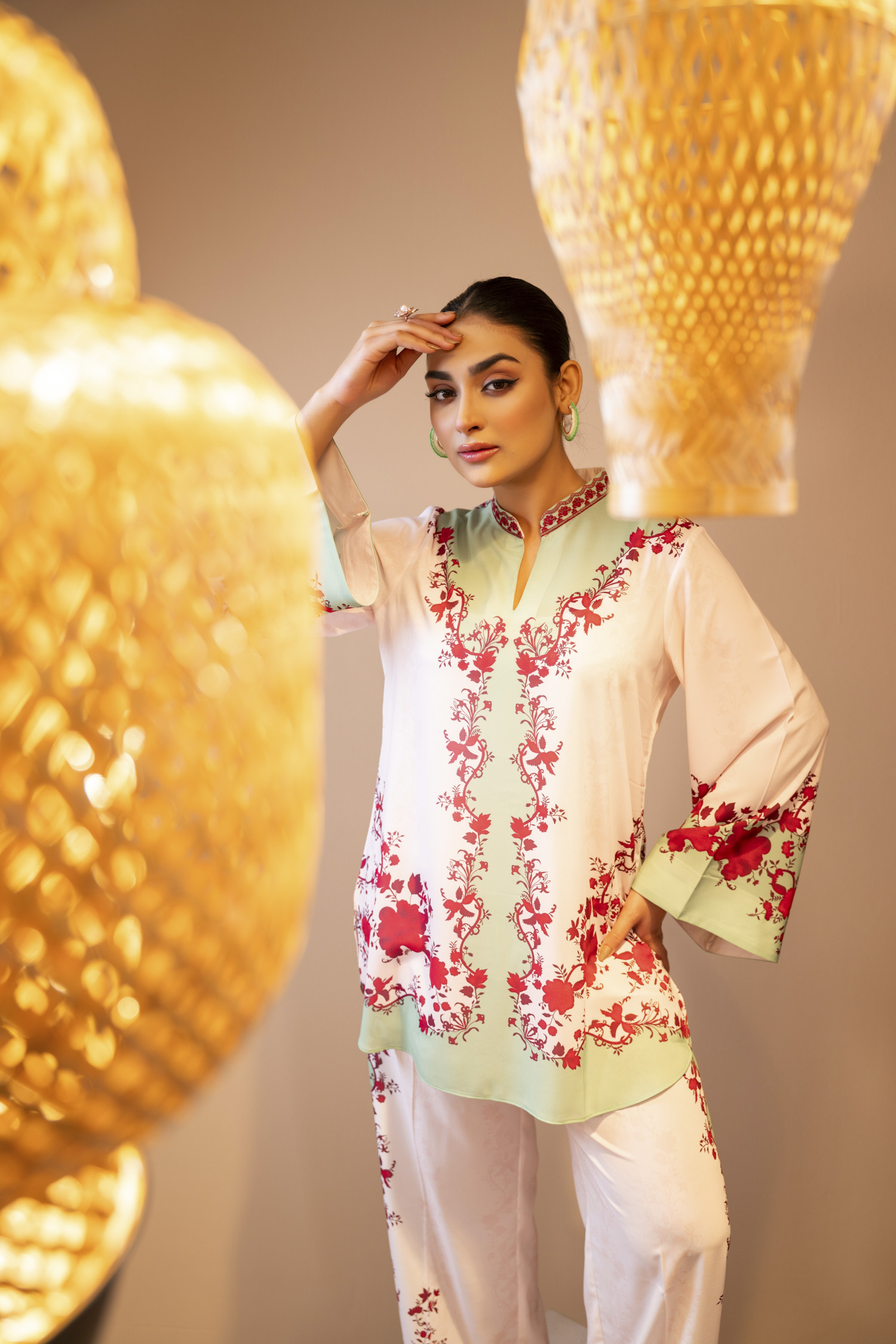 Trouser: 100% Polyester Georgette, Sublimation Printed.